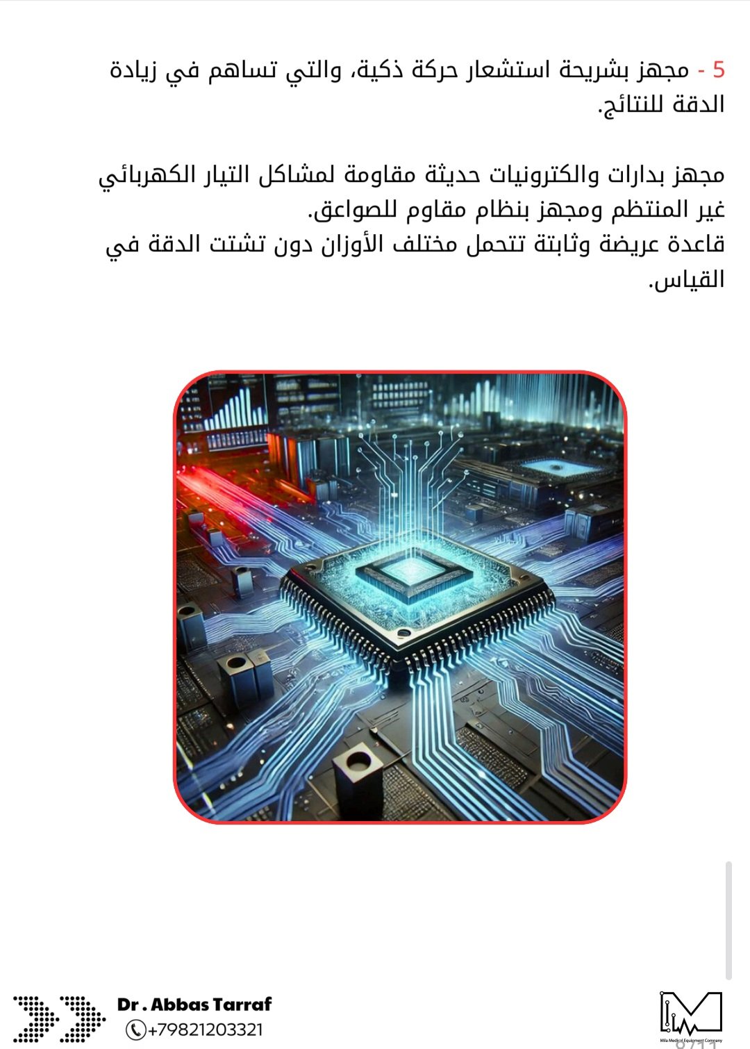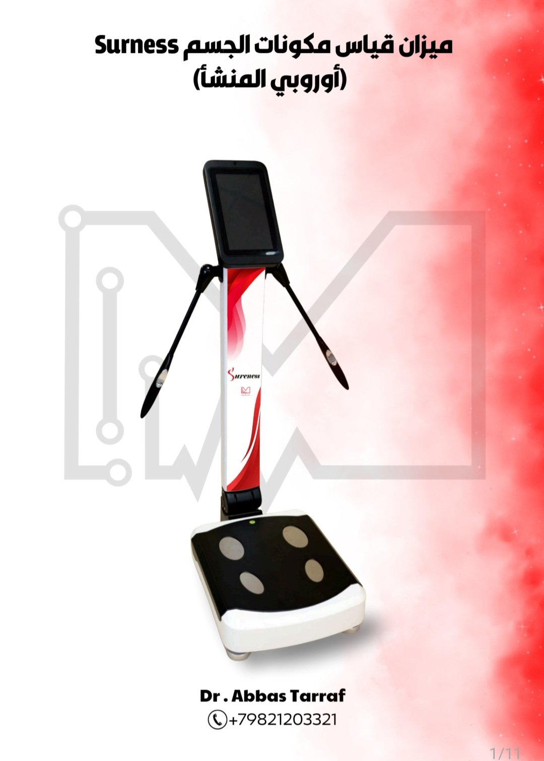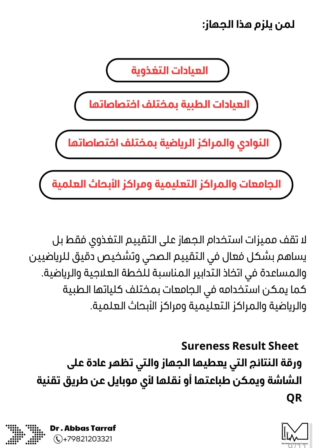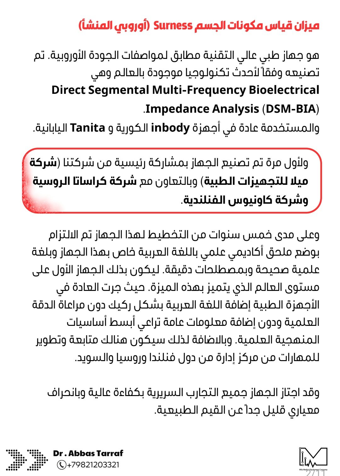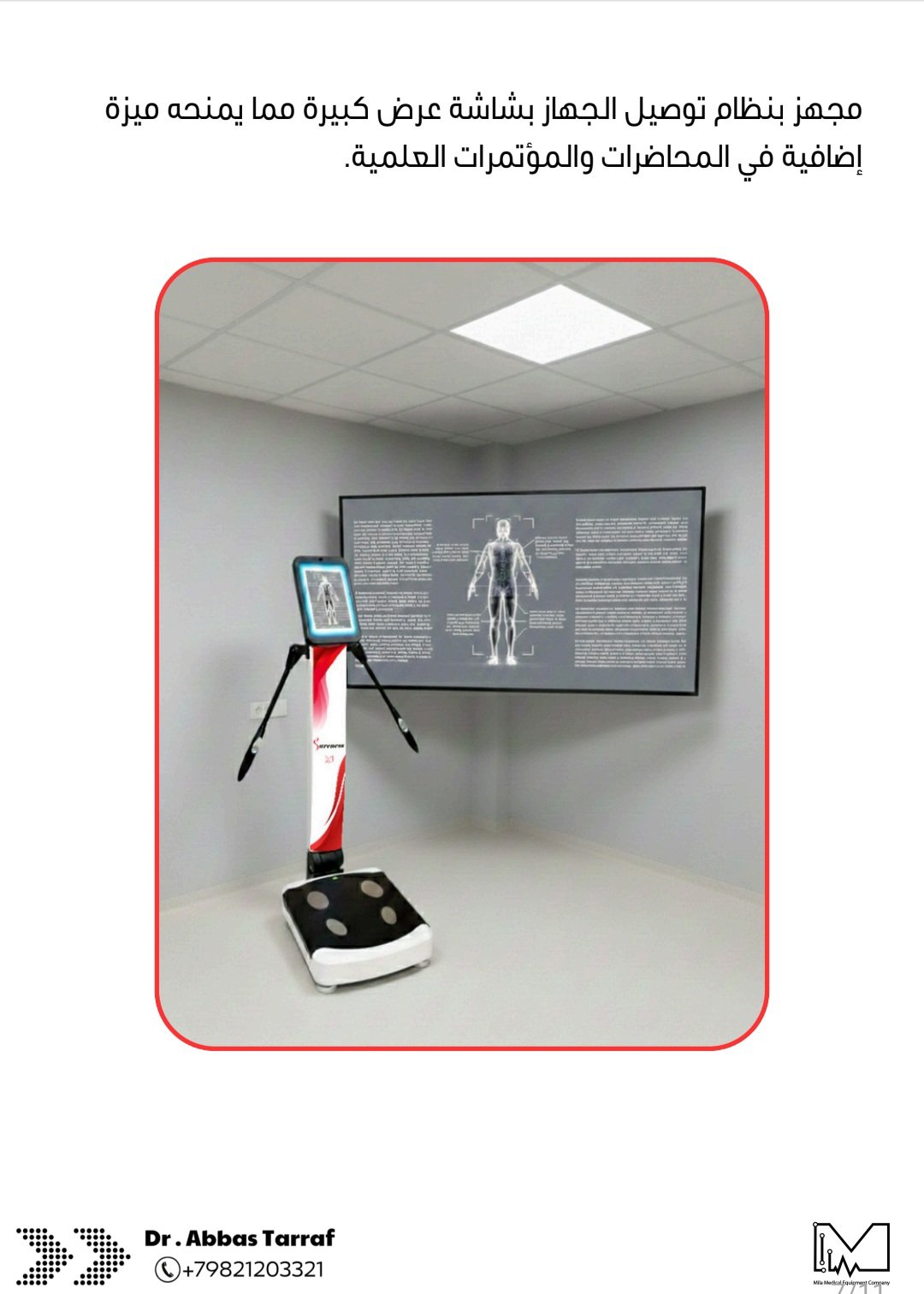 وسنعرض عليكم بالصور أدناه المواصفات العالية للجهاز والذي يتفوق بها على ميزانات قياس مكونات الجسم الموجودة حاليا في العالم.