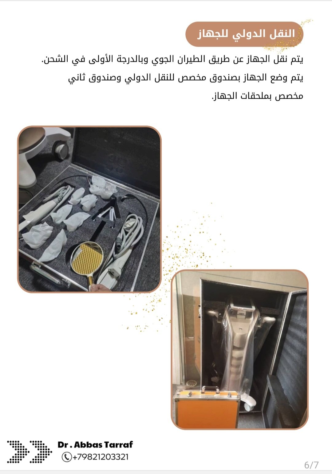 جميع أجهزتنا مكفولة لمدة سنتين كاملتين والسعر يشمل التوصيل لعيادتكم والتدريب والتعليم والمتابعة.