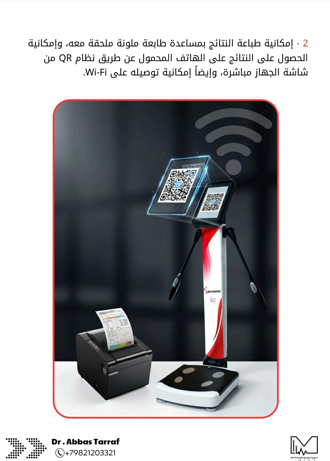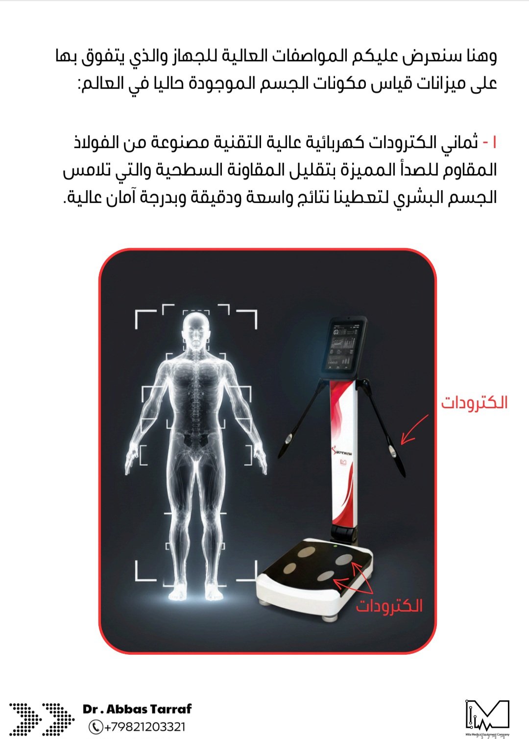 وسنعرض عليكم بالصور أدناه المواصفات العالية للجهاز والذي يتفوق بها على ميزانات قياس مكونات الجسم الموجودة حاليا في العالم.